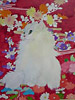 少しの違和感とそれ以上の存在感。高価な総柄は長毛猫によく映える。